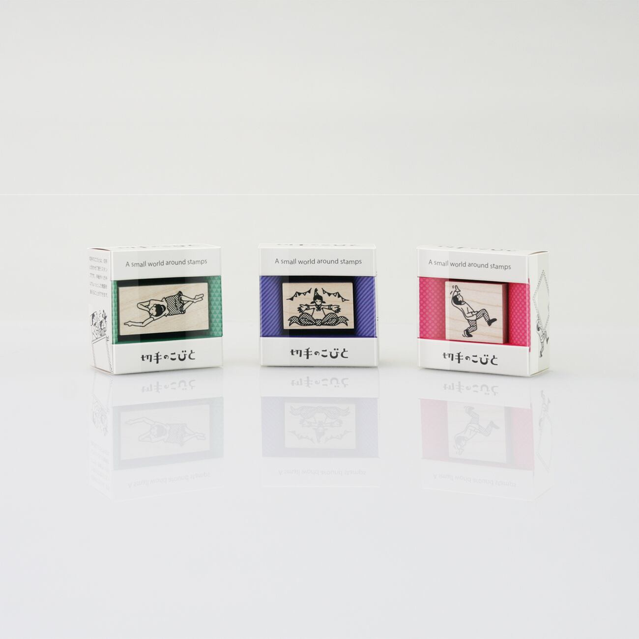 「切手のこびと」は切手と組み合わせて使えるスタンプです。季節の手紙や様々なイベントの招待状、引っ越しの挨拶状、年賀状など、手紙やハガキを送る際に、切手の周りにクスッと笑える物語を沿えて送ることができます。