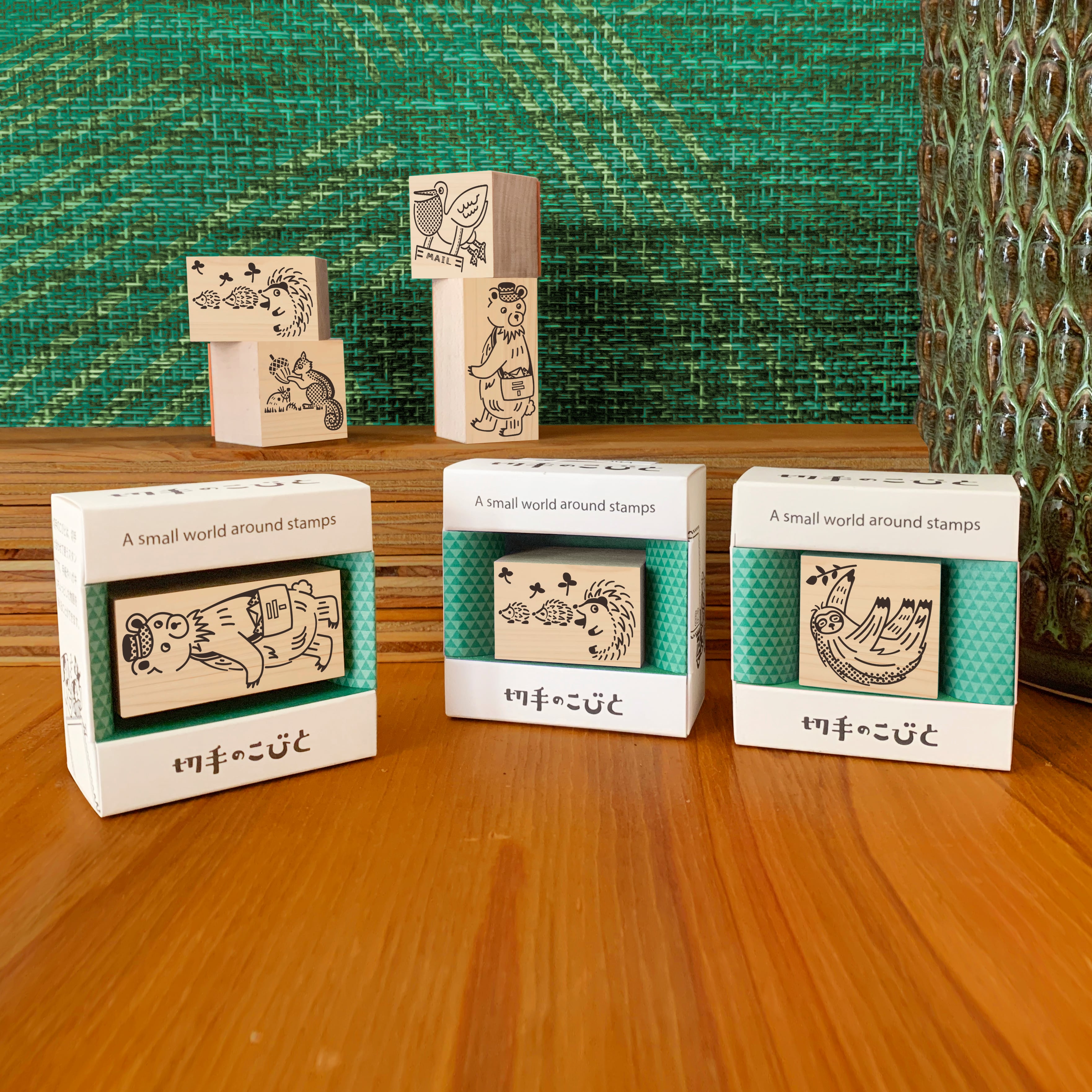 「切手のこびと」は切手と組み合わせて使えるスタンプです。季節の手紙や様々なイベントの招待状、引っ越しの挨拶状、年賀状など、手紙やハガキを送る際に、切手の周りにクスッと笑える物語を沿えて送ることができます。