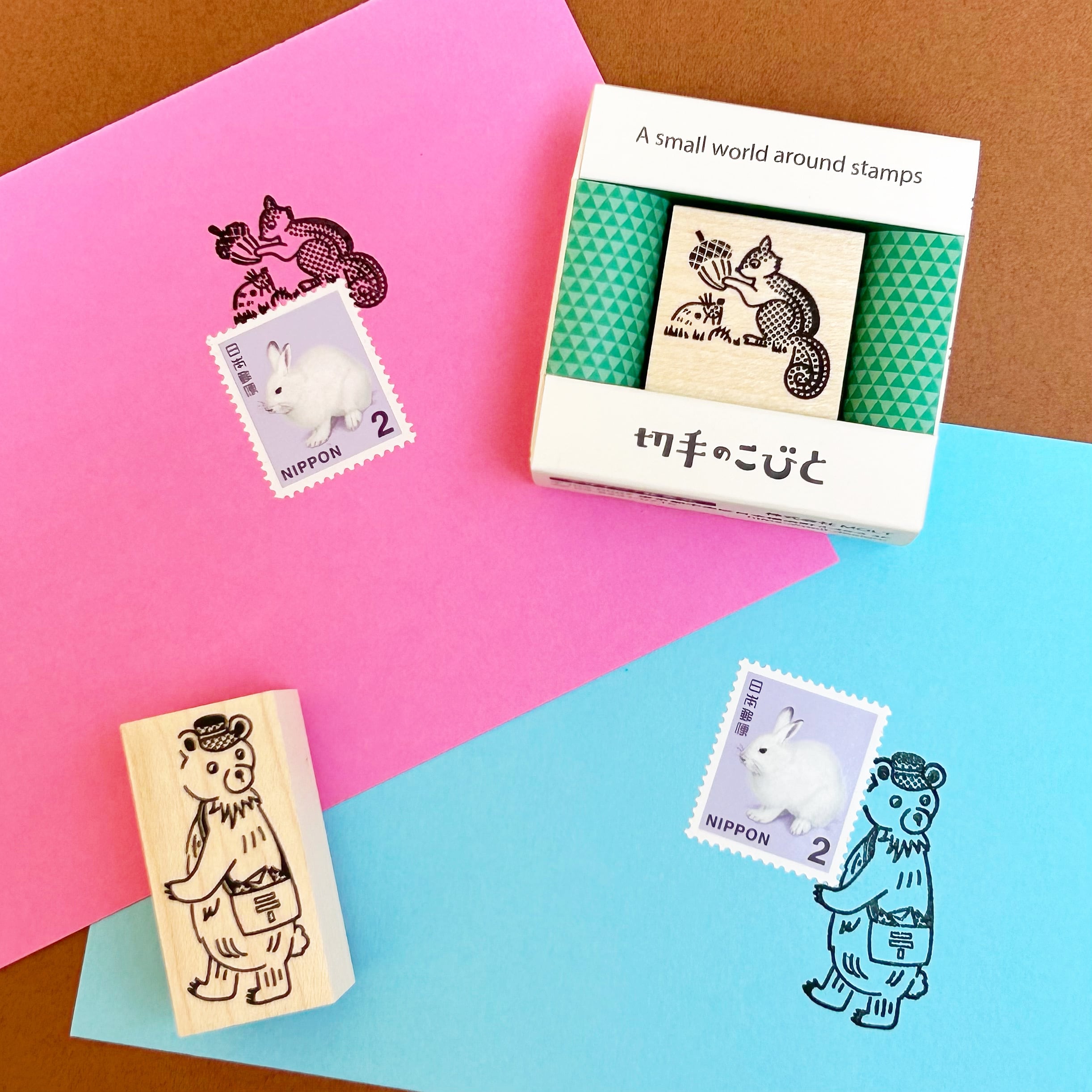 「切手のこびと」は切手と組み合わせて使えるスタンプです。季節の手紙や様々なイベントの招待状、引っ越しの挨拶状、年賀状など、手紙やハガキを送る際に、切手の周りにクスッと笑える物語を沿えて送ることができます。