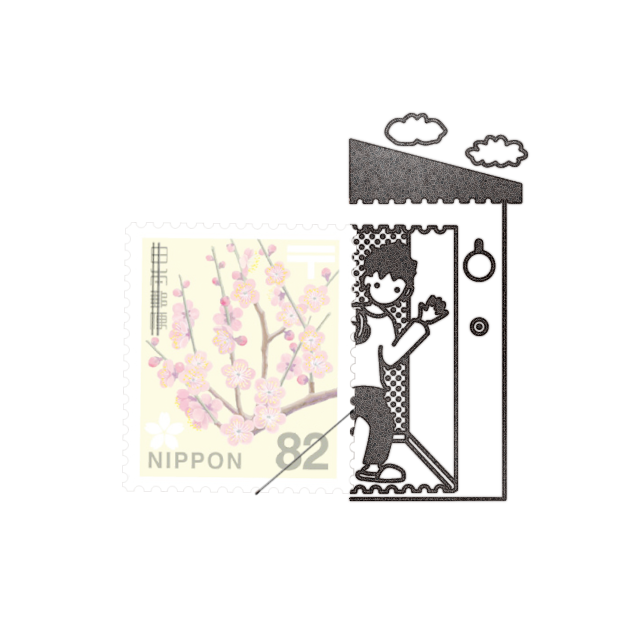 「切手のこびと」は切手と組み合わせて使えるスタンプです。季節の手紙や様々なイベントの招待状、引っ越しの挨拶状、年賀状など、手紙やハガキを送る際に、切手の周りにクスッと笑える物語を沿えて送ることができます。
